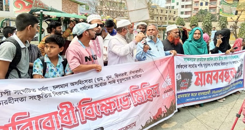 কুমিল্লার লাকসামে গৃহবধুকে দলবদ্ধ ভাবে ধর্ষণের প্রতিবাদে ও ধর্ষকদের বিচার দাবীতে লাকসামে মানববন্ধন করেছে বিভিন্ন সামাজিক সংগঠন।