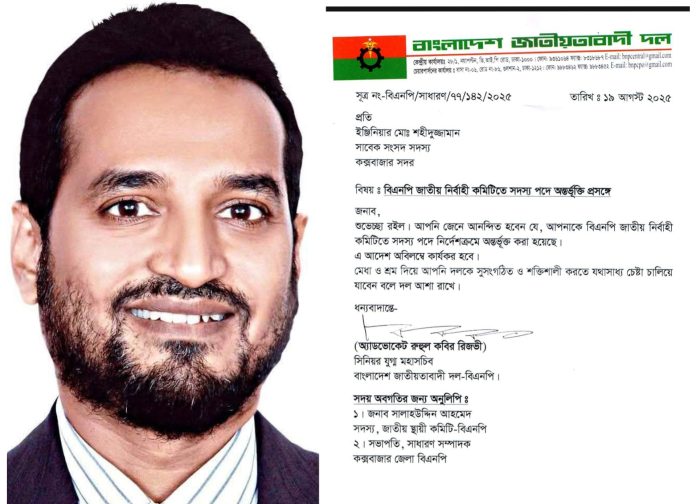 ইঞ্জিনিয়ার মোহাম্মদ সহিদুজ্জামানকে দেয়া এক আদেশে অ্যাডভোকেট রুহুল কবির রিজভী লিখেছেন, ‘আপনাকে বিএনপি জাতীয় নির্বাহী কমিটিতে সদস্য পদে নির্দেশক্রমে অন্তর্ভুক্ত করা হয়েছে। এ আদেশ অবিলম্বে কার্যকর হবে।’