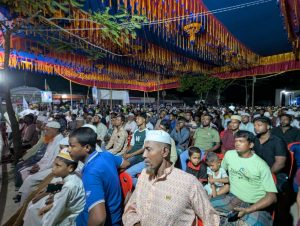 “ দাড়ীপাল্লার পক্ষে ভোট দিন”—এই স্লোগানে মুখরিত ছিল পুরো ময়দান। অনুষ্ঠানে দোয়া পরিচালনা করা হয় এবং উপস্থিত জনতা “তাকবির! আল্লাহু আকবার!” ধ্বনিতে সমাবেশ প্রাঙ্গণ মুখরিত করে তোলে।