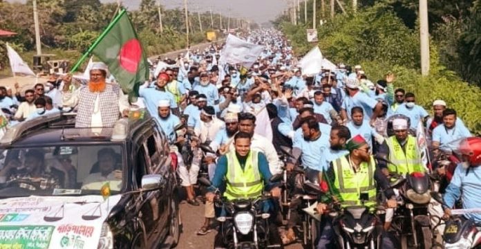 জামায়াতের দলীয় সূত্র জানায়, পূর্বঘোষিত দলীয় কর্মসূচীর হোন্ডা র্যালীর জন্য শনিবার ভোর থেকে এ আসনের বিভিন্নস্থান থেকে শত শত মোটর সাইকেল লাকসাম ষ্টেডিয়ামে আসতে শুরু করে। সকাল ৯টার দিকে এ বিশাল হোন্ডা র্যালী বের হয়ে লাকসাম উপজেলার পূর্ব ইউপি (নরপাটি), আজগরা হয়ে মনোহরগঞ্জের খিলা, নাথেরপেটুয়া, বিপুলাসার, লক্ষনপুর, বাইশগাঁও, মৈশাতুয়া, ঝলম দক্ষিণ ইউপির বিভিন্ন অলিগলি-হাটবাজারের উপর দিয়ে আবারও লাকসাম উপজেলার মুদাফরগঞ্জ দক্ষিণ, মুদাফরগঞ্জ উত্তর ও বাকই ইউপি হয়ে পৌরশহরের বিভিন্ন সড়ক প্রদক্ষিণ শেষে পুনরায় লাকসাম ষ্টেডিয়ামে এসে শেষ হয়।