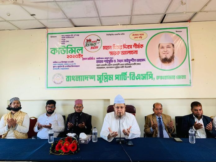 সোমবার (১৫ ডিসেম্বর) বিকেলে কক্সবাজারের কলাতলীর একটি মিলনায়তনে অনুষ্ঠিত মহান বিজয় দিবস শীর্ষক আলোচনা সভা ও বাংলাদেশ সুপ্রিম পার্টি-বিএসপি কক্সবাজার জেলা কাউন্সিলে প্রধান অতিথির বক্তব্যে তিনি এসব কথা বলেন।