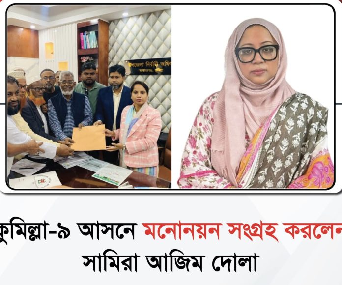 জাতীয় সংসদ নির্বাচনে কুমিল্লা-৯ (লাকসাম-মনোহরগঞ্জ) আসন থেকে বিএনপির দলীয় মনোনয়নপ্রত্যাশী সামিরা আজিম দোলার পক্ষে মনোনয়নপত্র সংগ্রহ করেছেন নেতাকর্মীরা।