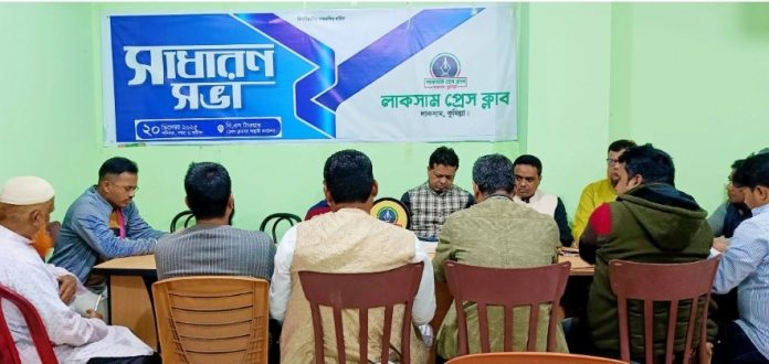 লাকসামের ঐতিহ্যবাহী লাকসাম প্রেসক্লাবের সাধারণ সভা অনুষ্ঠিত হয়েছে। সভায় সভাপতিত্ব করেন প্রেসক্লাবের সভাপতি অ্যাডভোকেট বদিউল আলম সুজন এবং সঞ্চালনা করেন সাংগঠনিক সম্পাদক মিজানুর রশিদ।