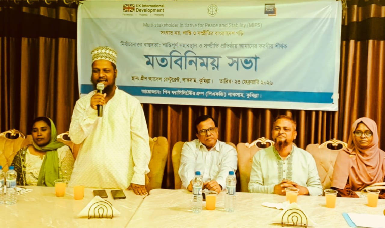 সংঘাত নয়, শান্তি ও সম্প্রীতির বাংলাদেশ গড়ি এই প্রতিপাদ্য নিয়ে পিস ফ‍্যাসিলিটেটর গ্রুপ (পিএফজি) লাকসাম ইউনিট আয়োজিত নির্বাচনোত্তর বাস্তবতা: শান্তিপূর্ণ সহাবস্থান ও সম্প্রীতি প্রতিষ্ঠায় আমাদের করণীয় শীর্ষক মতবিনিময় সভা অনুষ্ঠিত হয়েছে।