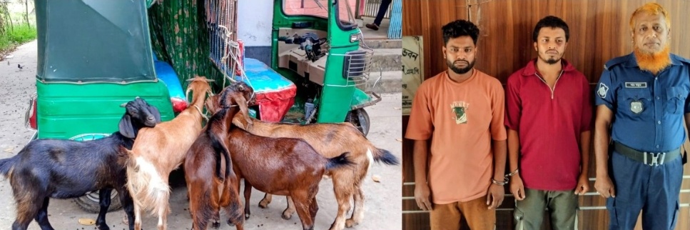 পুলিশ জানায়, ১৫ এপ্রিল (বুধবার) ভোর পৌনে ৫টার দিকে লাকসাম উপজেলার কান্দিরপাড় ইউনিয়নের চাঁনগাঁও আবেদনগর এলাকার মাওলানা মো. আবু তাহেরের ছাগল রাখার ঘর থেকে সিএনজিতে করে ৫টি ছাগল চুরি করে নিয়ে যাওয়ার সময় পাশ্ববর্তী নোয়াপাড়া বাজার সংলগ্ন লাকসাম-মুদাফরগঞ্জ সড়কের নোয়াপাড়া জামে মসজিদের পাশে রাস্তার উপর স্থানীয় লোকজনের সহায়তায় লাকসাম থানা পুলিশ সড়কে ব্যারিকেড দিয়ে ৫টি ছাগল ও একটি সিএনজিসহ দুই চোরকে আটক করে।